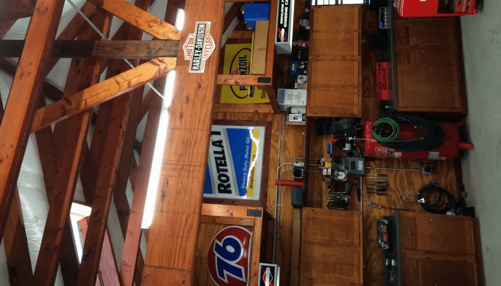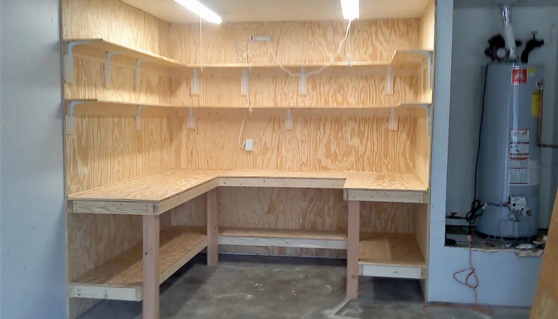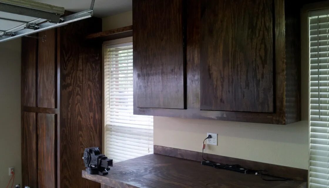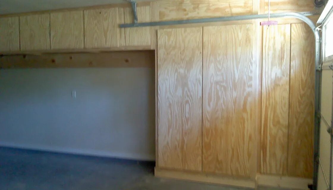 Custom traditional wood framed garages, wood garage cabinets and workbenches.