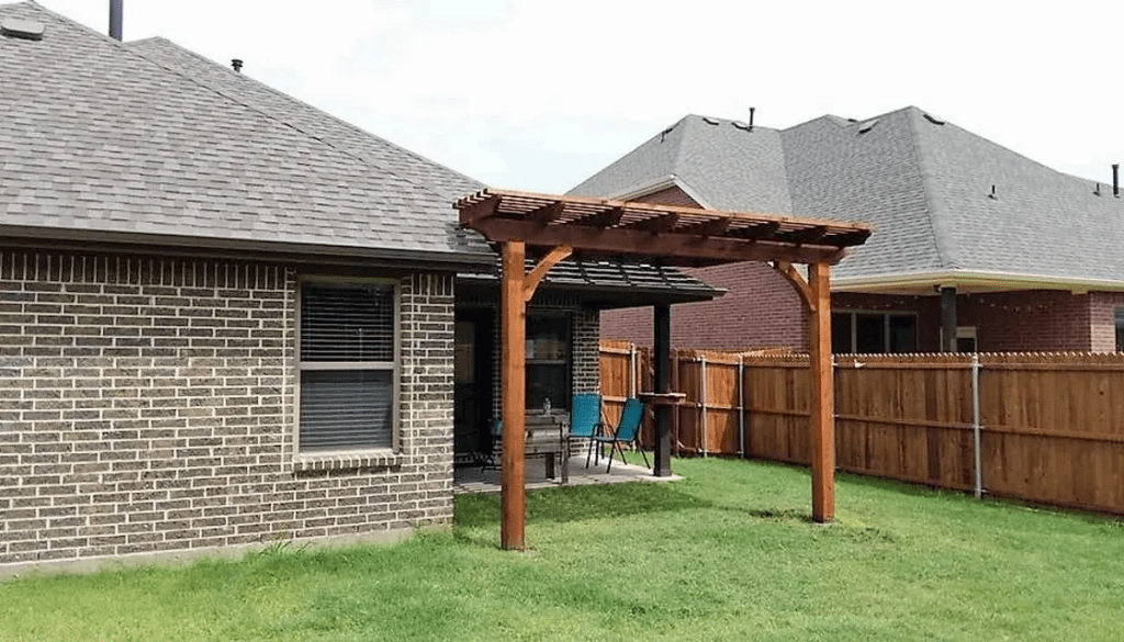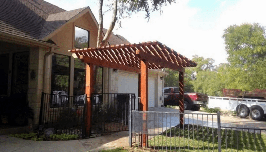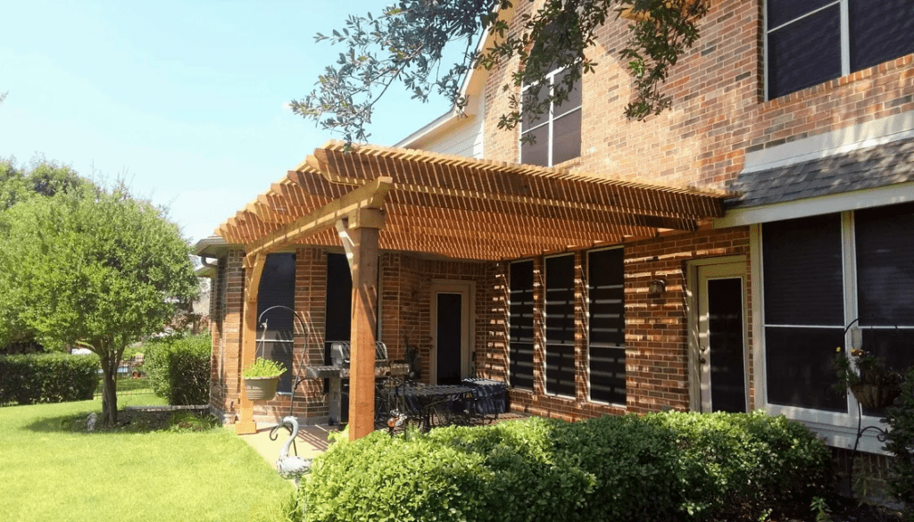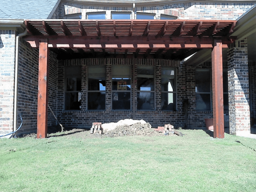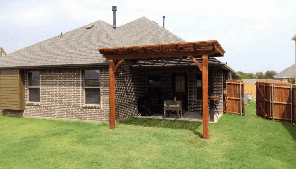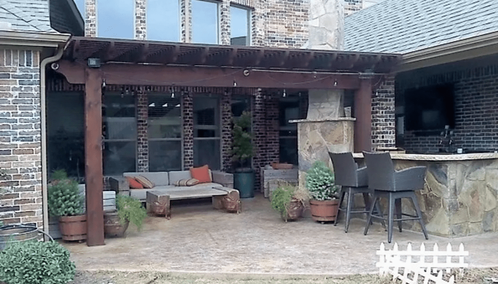A pergola is a patio cover with an open lattice or slatted roof supported by columns or posts. Pergolas are not designed to completely block the sun, but to provide relief from direct sunlight, while allowing air to circulate freely. We can customize the slats closer to optimize the shade. Usually, a pergola is a defined place for gathering. It can be a patio cover attached to the home or freestanding at a defined area.