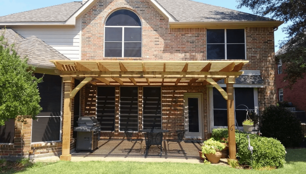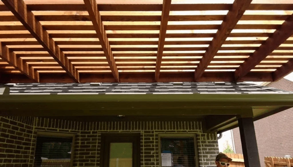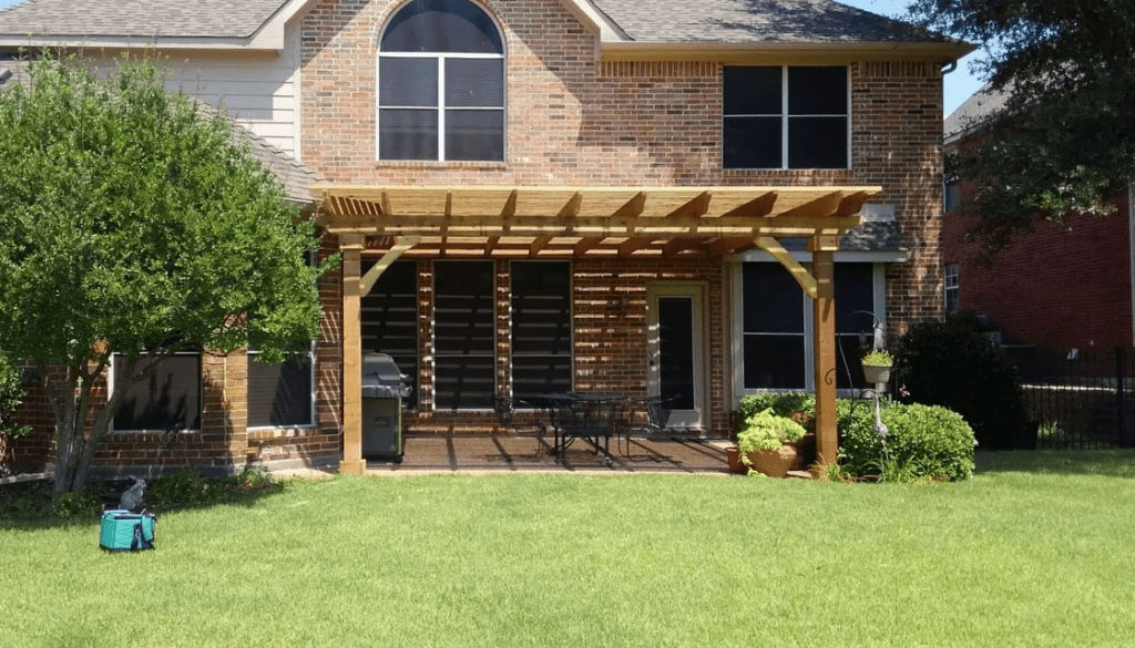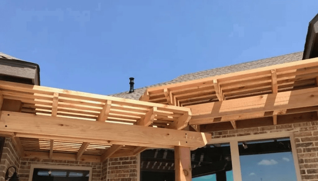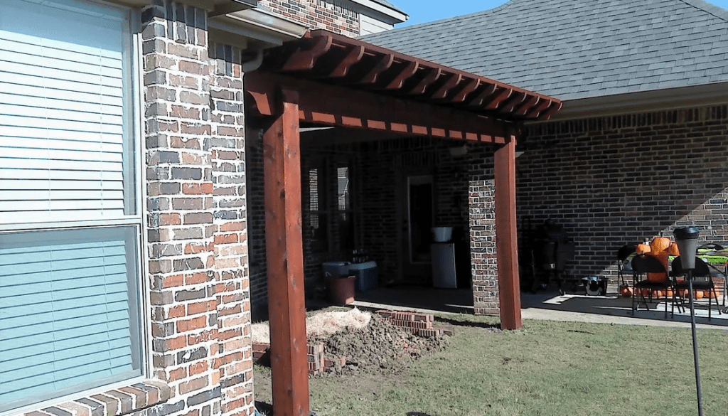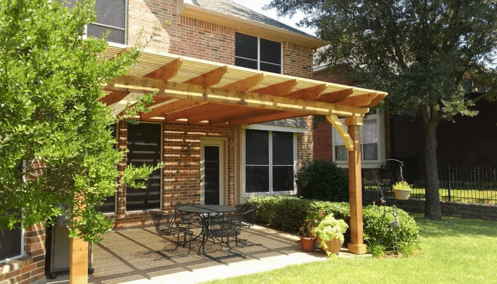 A pergola is a patio cover with an open lattice or slatted roof supported by columns or posts. Pergolas are not designed to completely block the sun, but to provide relief from direct sunlight, while allowing air to circulate freely. We can customize the slats closer to optimize the shade. Usually, a pergola is a defined place for gathering. It can be a patio cover attached to the home or freestanding at a defined area.