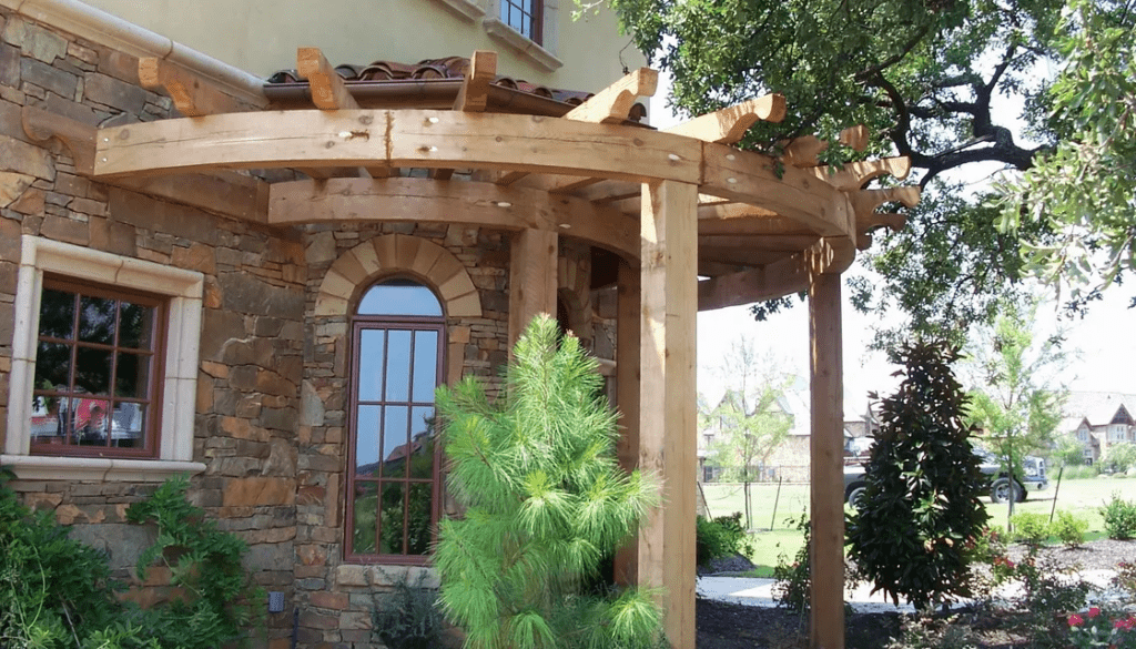 Custom Cedar pergola To Fit Curved Wall
